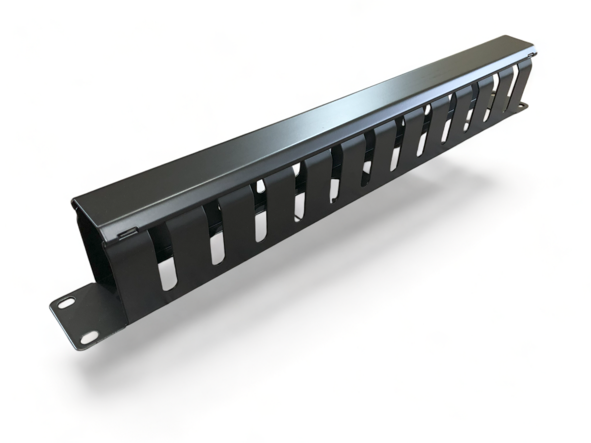 1U Black Horizontal Cable Management 12 Slot (Metal) - Horizontal rack cable managers are essential components of network racks used to organize and manage cables horizontally within server racks or network cabinets.